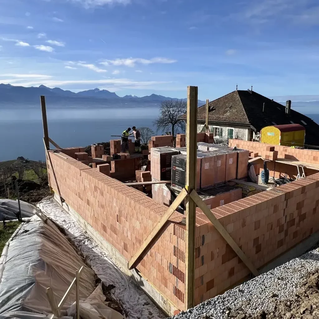 La maçonnerie de briques monolithique est une technique de construction qui utilise du béton cellulaire, mais également des briques en terre cuite monomur isolantes sans besoin d’ajouter une couche supplémentaire.